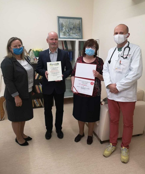 W imieniu Dyrektora IAS symboliczny czek na ręce Prezesa Hospicjum w Koszalinie – Pani Marii Okońskiej, wręczył Naczelnik Pierwszego Urzędu Skarbowego w Koszalinie. Prezes Okońska dziękując za darowiznę powiedziała: