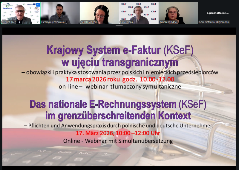 Webinar uwzględniał również współdziałanie przedsiębiorców po polskiej i niemieckiej stronie granicy, w szczególności w kontekście rozliczeń oraz wymiany faktur w ramach działalności międzynarodowej.