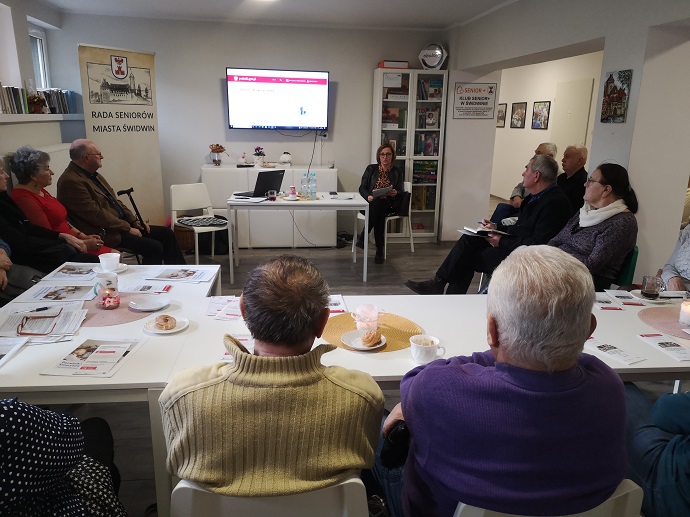 Aktywni seniorzy ze Świdwina poznali usługi elektroniczne dostępne w serwisach Ministerstwa Finansów w tym e-Urząd Skarbowy i Twój e-PIT, pozwalające załatwić wiele spraw w urzędzie skarbowym bez wychodzenia z domu.
