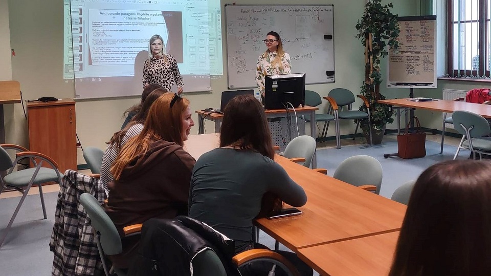 Urząd Skarbowy w Gryficach gościł uczniów II klasy OZ z Zespołu Szkół im. Czesława Miłosza w Gryficach. Celem spotkania było zwiększenie świadomości podatkowej dotyczącej pracy sezonowej. Dodatkowo rozmawialiśmy o obowiązku ewidencjonowania przy zastosowaniu kas rejestrujących i wydawania paragonów. Pokazaliśmy młodzieży jak funkcjonuje urząd skarbowy. Szkolenie poprowadziły Marta Siemaszko oraz Ewelina Ścisłowska.