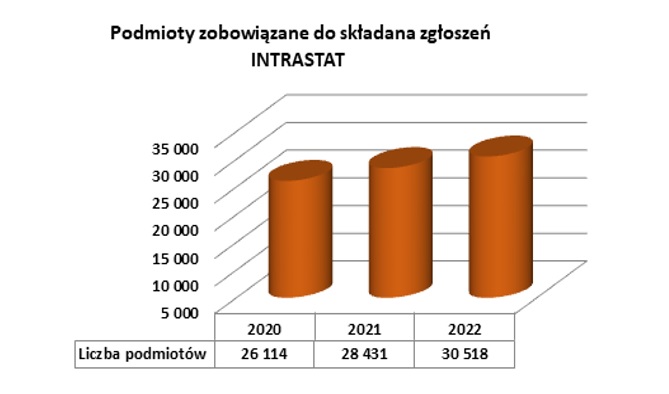 Załączona mapa i wykres przedstawiają państwa Unii Europejskiej oraz liczbę podmiotów zobowiązanych do gromadzenia danych statystycznych w obszarze INTRASTAT